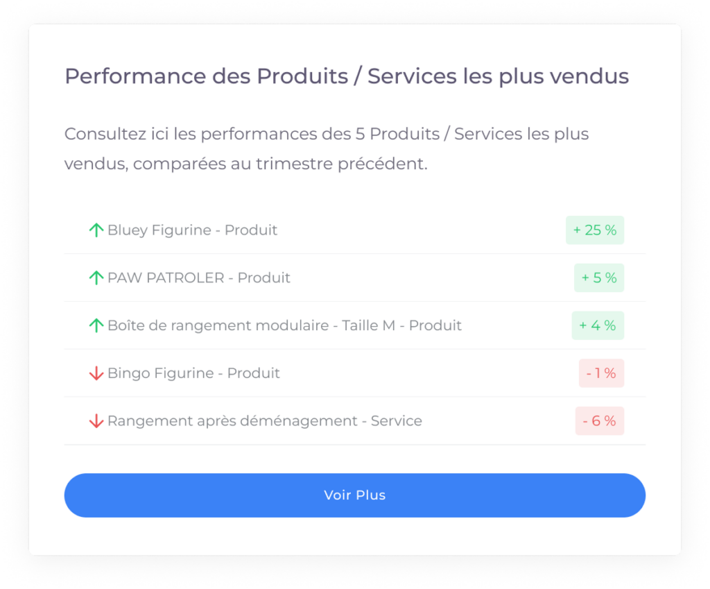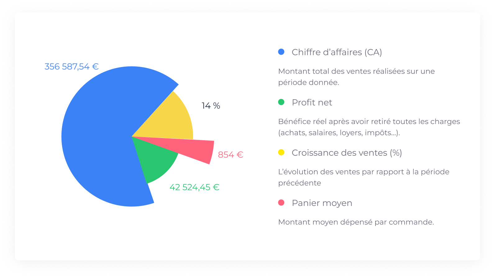 Visualisez vos KPIs, suivez vos performances et exportez vos données.