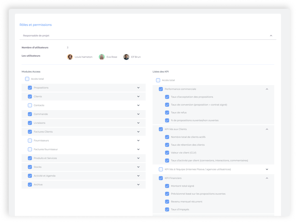 Floova vous permet d'activer uniquement les fonctions dont vous avez besoin :